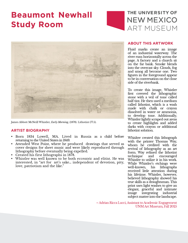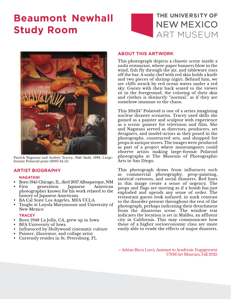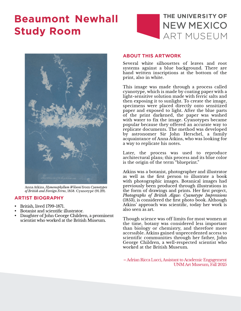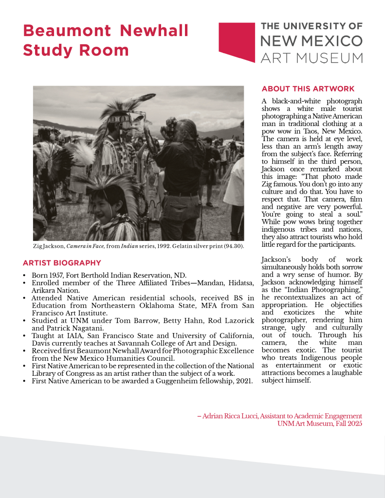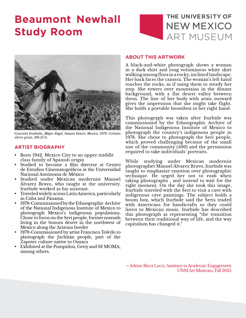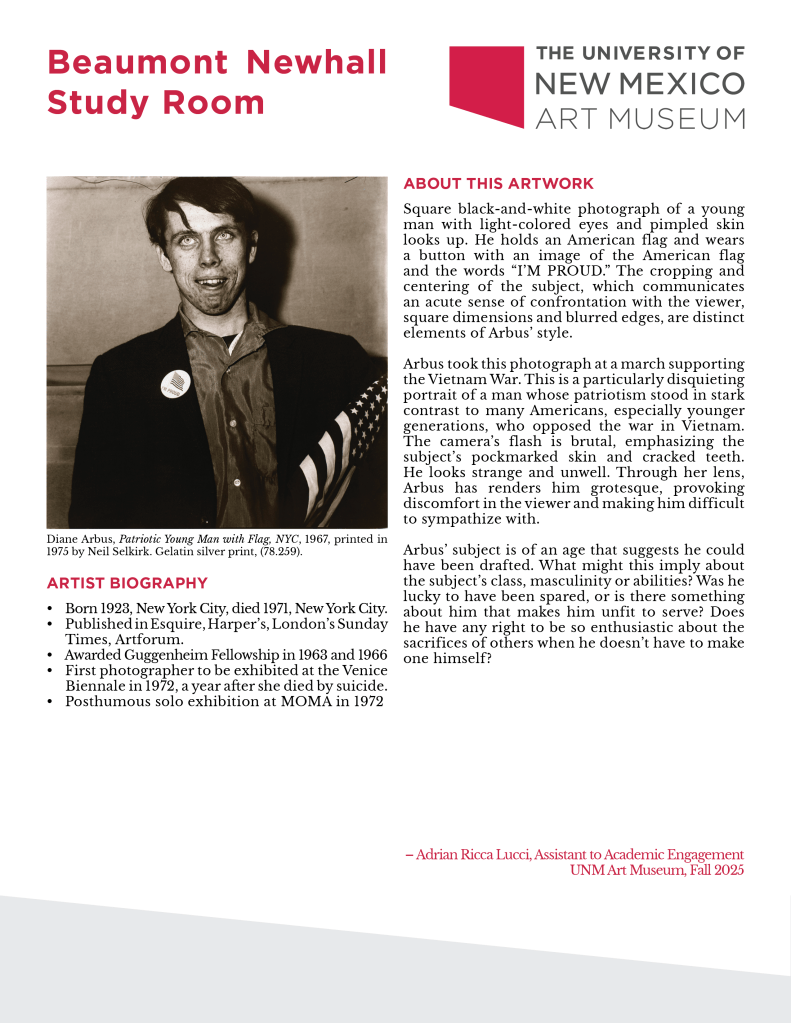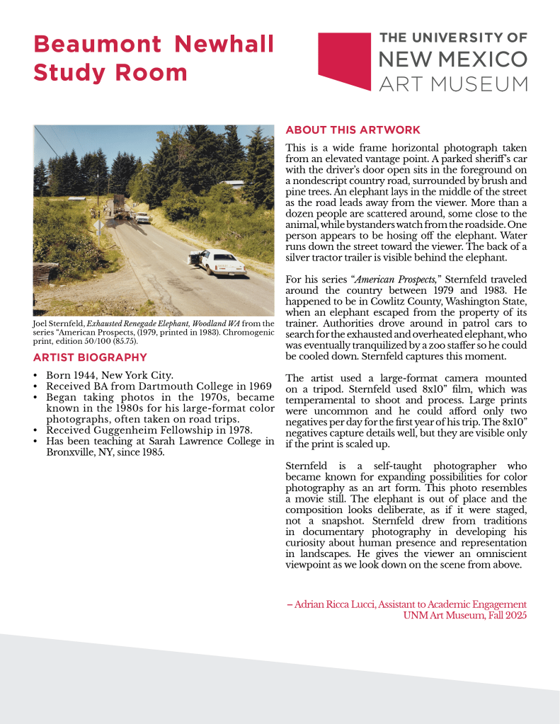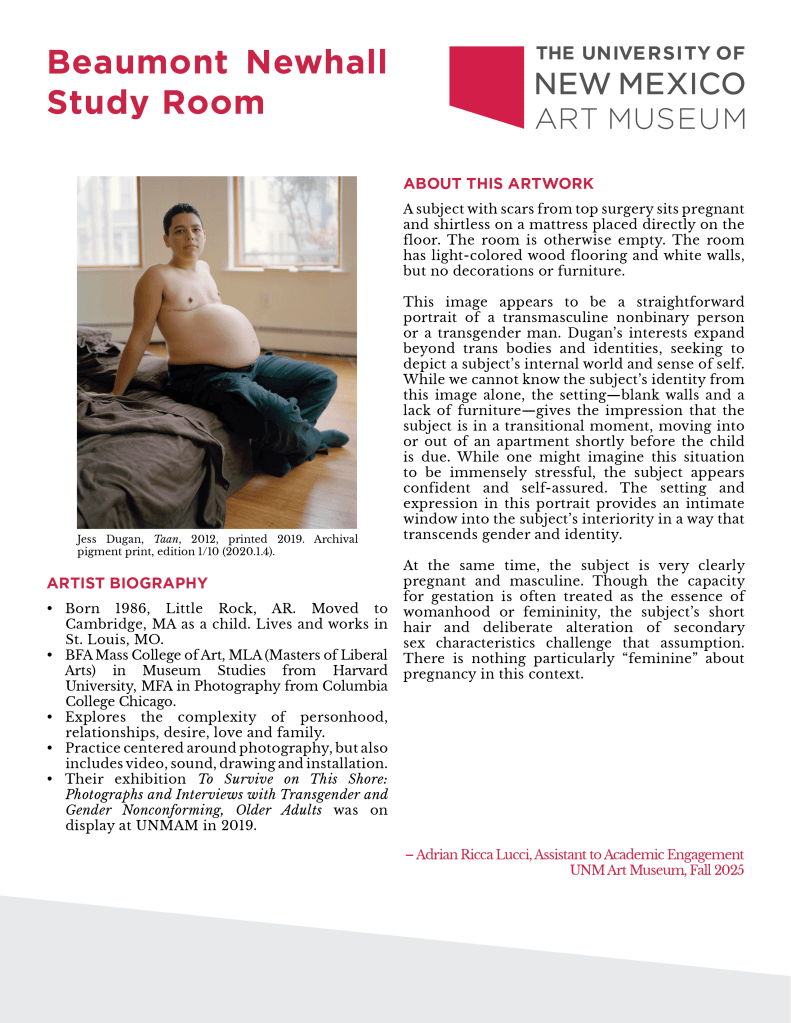 The UNM Art Museum’s biggest limitation is their ability to effectively display and discuss the unique stories behind each object of the collection. With over 30,000 pieces of art and only three primary gallery spaces there was a need to find an innovative way to make the art accessible. The Beaumont Newhall Study Room At-A-Glance sheet was that solution. Taking history reporting from study room assistants