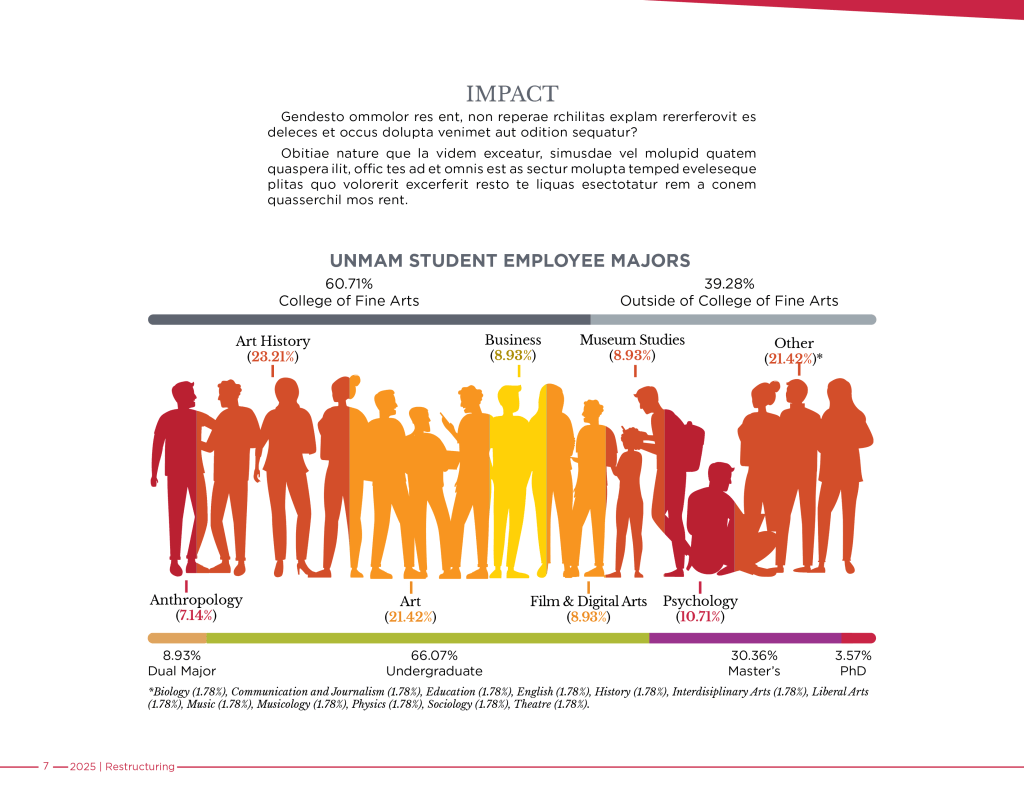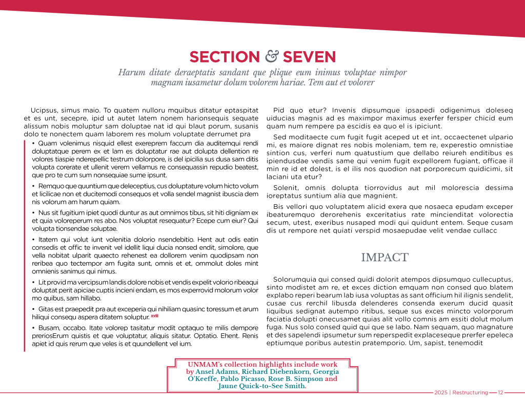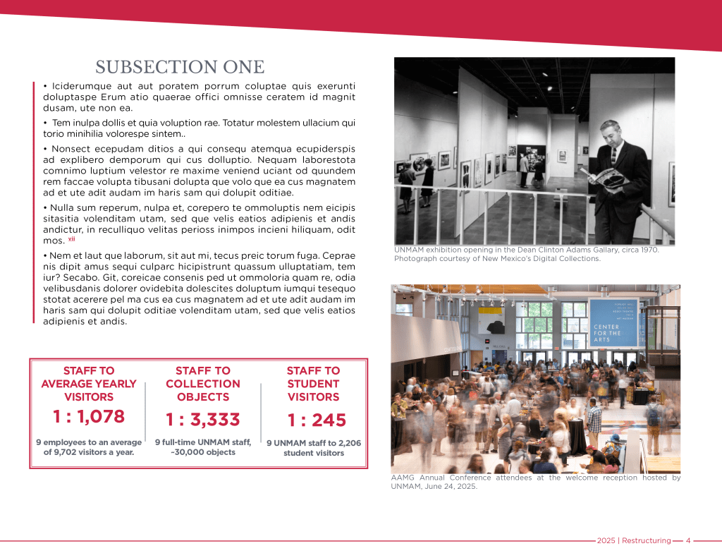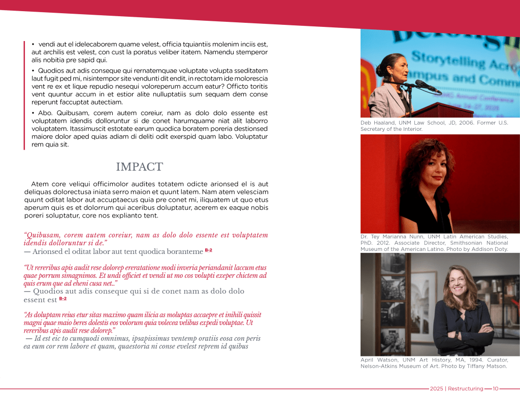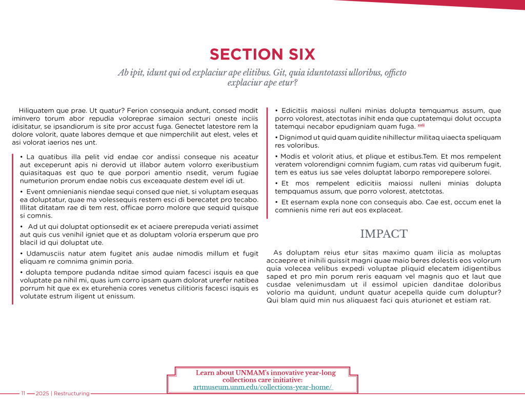 In mid-2025 UNMAM needed a document that highlighted UNMAM’s achievements and impact on the University of New Mexico in recent years. The material needed to be accessible digitally and by print, needing to cover a wide breadth of subjects that the museum contributes to across UNM.